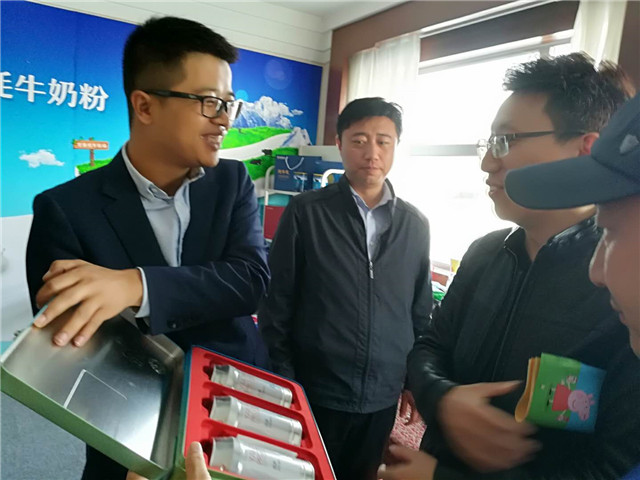 敏少華向客商介紹牦牛乳配方奶粉