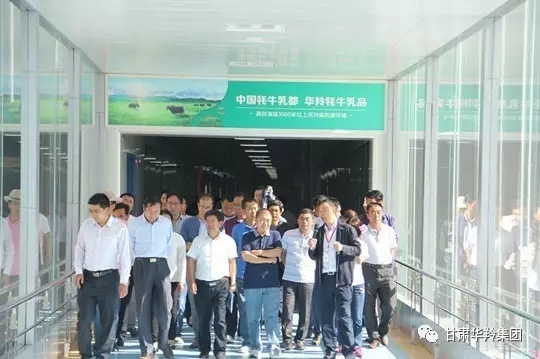 2017年8月16日,武威市天?h政府副縣長宋衛(wèi)信、天?h政協(xié)副主席權(quán)勝帶領(lǐng)天?h第二批黨政代表考察團(tuán)一行91人在合作市政府副市長劉升平、合作市政協(xié)副主席包和平的陪同下蒞臨甘肅華羚乳品集團(tuán)公司參觀考察。